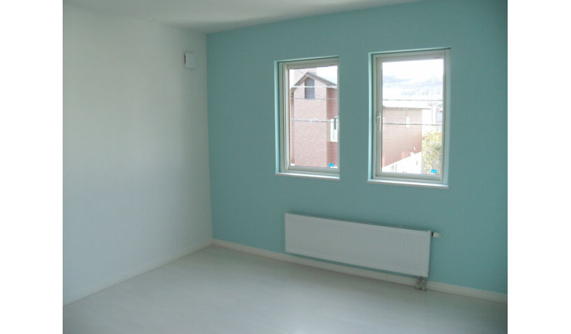 アフター:リフォーム完成後の洋室。アクセントに一面を色を変え、可愛らしい雰囲気に。