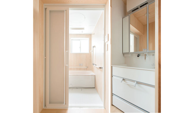 長年、使ってこられたタイル貼りの浴室や造り付けの洗面台が、徐々に使いづらいと感じるようになられ、思い切ってリフォーム。温度や段差のバリアフリ ー化で、使い勝手のいい水廻りになりました。