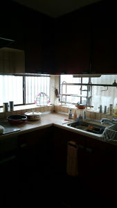 アフター:キッチンの裏側に、お子様が勉強できるワークスペースを設置。調理中でも目が届き、いつでもコミュニケーションがとれるように。天井までの大きな収納でダイニングキッチンがすっきりと片付きました。