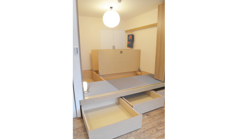アフター:畳は小上がりの「畳が丘」で、畳の下全面が収納スペースになっています。これで普段使う物・時々使う物など分けて収納ができそうです。