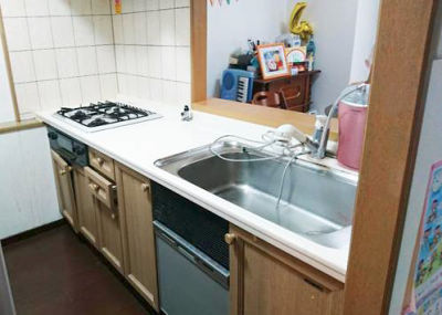 アフター:カウンター上を解決するりキッチン「リフォムス」にしました。新しいキッチンにお子さんにも喜んでもらえました。
