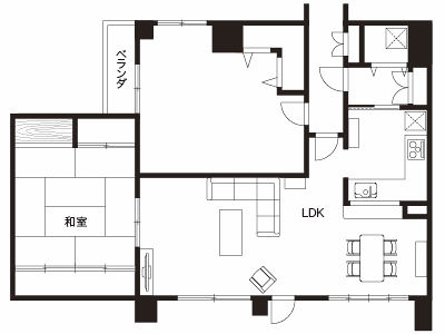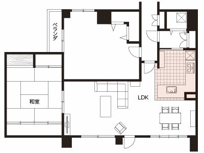 アフター:入居以来、「視界が遮られてイヤだった」というキッチンの吊戸棚を取り払い、「Lクラスキッチン」に。ご家族と会話をしながら料理や片付けができる、理想の空間に生まれ変わりました。