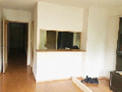 ビフォア:吊戸棚の存在感が大きく、景色も会話も楽しめなかったキッチン。
