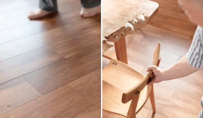 アフター:木の質感がお好きなS様。以前からケヤキの無垢材のダイニングテーブルを愛用されているため、床材もキッチンの扉カラーもテーブルに合う色味を選びました。“家族でテーブルを囲んで食事をする場ですので、とにかく落ち着く空間にしたかったそう。