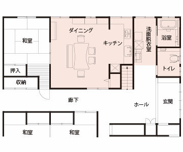 息子さん夫婦との二世帯同居を機に、住まいを大規模リフォーム。とくに共用で使用するキッチン・浴室・洗面所・トイレには、「来客が多いので空間に余裕が欲しい」「モノが多い」「冬が寒い」「室内干しスペースが欲しい」などのお悩みを解消する設備を導入しました。
