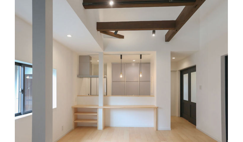 アフター:既存の梁を活かして解放感のある明るいダイニング