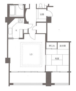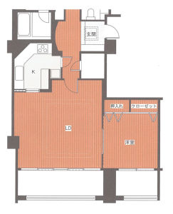 アフター:和室を洋室に変更。廊下・LD・洋室の床仕上げを同種のフローリング仕上げに。キッチンと周辺収納も引き出し収納に。