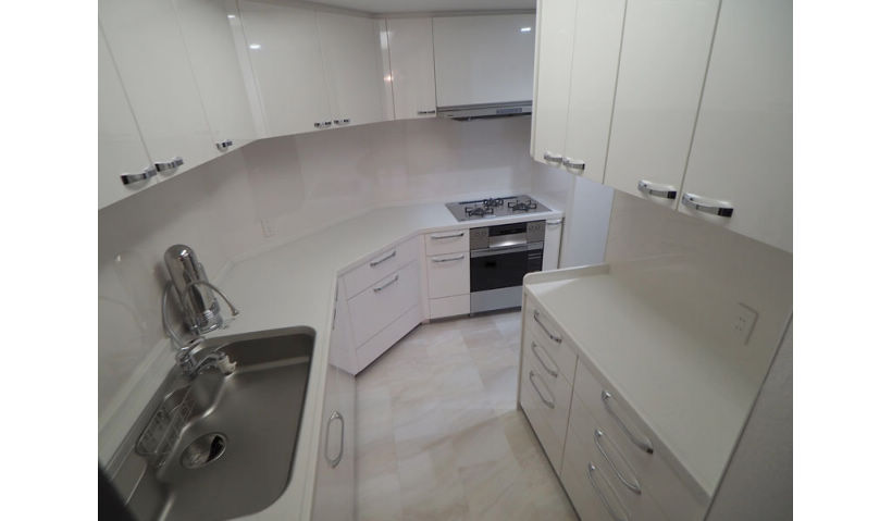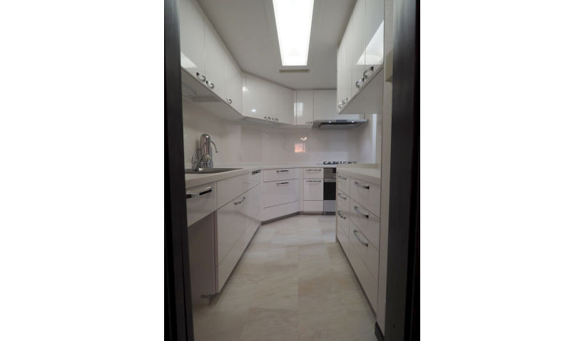 村田慶介・村田芳子 戸建てからマンションへのお引越しでお話を頂きました。あかりに注目されていたお施主様。クラシックのシャンデリアやブラケットを、お持ちの家具と位置を照らし合わせ設置寸法を決定し、間接照明やダウンライトと組合せることで、クラシックになりすぎないように雰囲気を作りました。キッチンはL字型の変形でしたが、白色でシンプルにさせたことで広く感じる仕上がりになりました。引き出しの幅やごみ箱ストックの位置など、使い勝手もお施主様のご要望に応えれたと思います。リビング横の洋室は、しっくいホワイト柄を採用し現代フレンチ風に和室から大変身できたと思います。