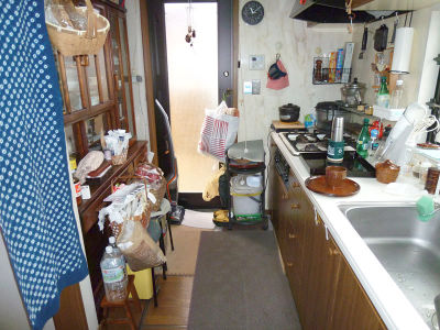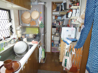 ビフォア:収納スペースはあるのに、物が納まらず圧迫感を感じる状態でした。キッチン窓からのお隣の視線も気にされていました。