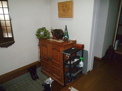 ビフォア:玄関が暗くて玄関先でのおもてなしがしずらく、収納も少なかったので、物が出ていてスッキリしない状態でした。玄関でおもてなしをする時の印象を良くしたいとのご希望でした。