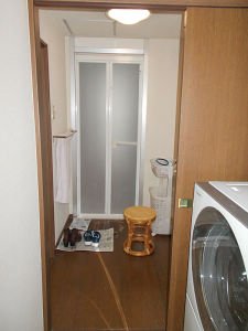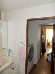 ビフォア:洗面室とユーティリティ―は引戸で仕切られていましたが、常に開けっ放しで使用されていませんでした。