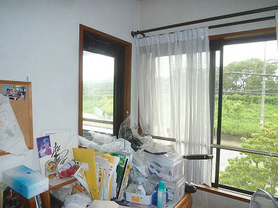 ビフォア:リビング横にあった洋室。腰窓の左がバルコニーへでるテラスサッシ。ここを塞いでレンガタイル調のクロスを貼ってテレビを設置。