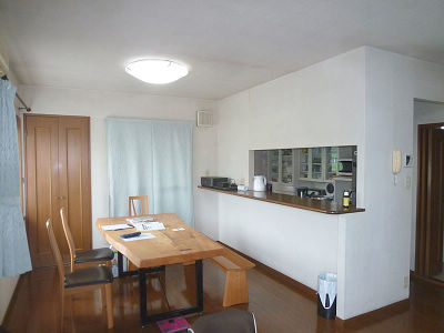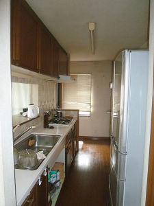 ビフォア:対面キッチンとはいえ開口が小さく壁に囲まれていた。奥の窓も必要性がなく塞ぐことをご希望されていた。