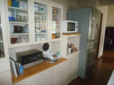 ビフォア:幅は結構あるカップボードも収納力はあまりないのと家電収納も別途必要だった。
