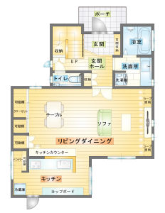 | テーマ | 団らんキッチン、バリアフリー、明るい部屋、吹き抜け、広々 |