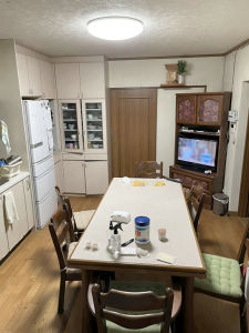 ビフォア:年数が経ち汚れも目立ち、アイランドキッチンにするのに、部屋全体のリフォームをした。
