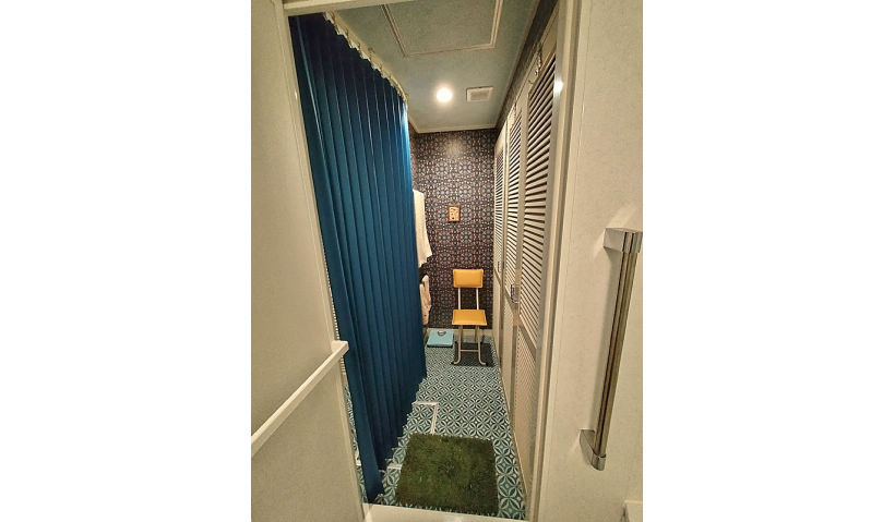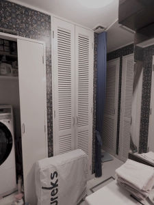 ビフォア:カーテンで仕切ると脱衣所が暗くて、なかなかカーテンを使えない。