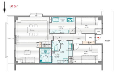 ビフォア:・部屋が分割されていて、LDKが狭い。