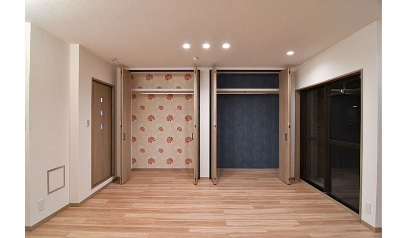 アフター:クローゼット内部はそれぞれのお気に入りの壁紙で、衣類を素敵に演出。