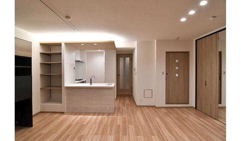 アフター:広々とした空間と広い浴室をご希望。1LDKにリフォーム