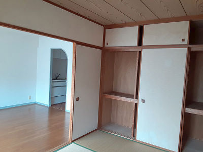 ビフォア:リビングダイニングに隣接する和室。ベッドをご希望の為奥行の深い押入れは収納のイメージができないと奥様。