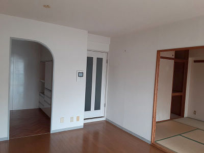 ビフォア:キッチン入口から見た和室とリビング。空間が仕切られ狭い感じがする為壁撤去をご希望