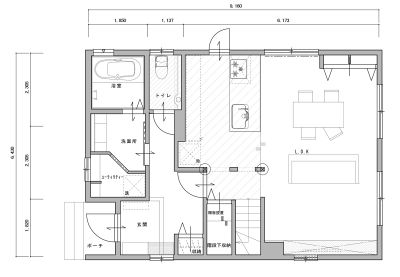 アフター:LDKに収納を設置。浴室サイズを1616に下げたことで洗面所とユーティリティを設けました