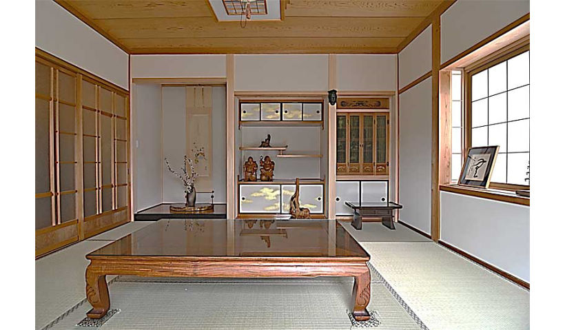 アフター:押入れと旧キッチン側に拡張して床の間・違い棚と仏間を新設。