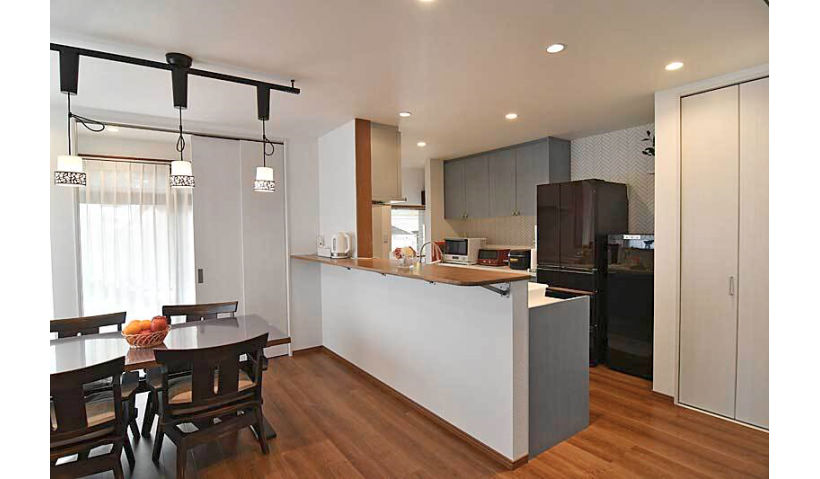 最初和室2間を無くすとLDKを気持ちよく使えるのは分かっていたのですが、不安もありどうしようかなと思っていた時に、図面とパースで様変わりした家のイメージを見せて頂き、こういう風に使えたらいいなぁという楽しみな気持ちに変わりどんどん話が進んでいきました。8帖の和室も大工さんの腕で、立派な床の間や仏間を再現して頂け良かったです。義母や息子・娘・私の部屋も快適になり収納も充実しました。広さはあったのですが食後寛ぐのは4.5帖の北側の和室だったのが今は広いリビングに皆集まっています。
