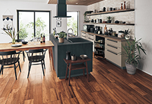 北欧テイストの特徴のひとつは、自然素材。例えば、床がホワイトの木目柄のフローリングの場合、キッチンの扉も木質材を選ぶのがおすすめです。色柄は、床かキッチン扉のどちらかを控えめな色柄にするとまとまります。