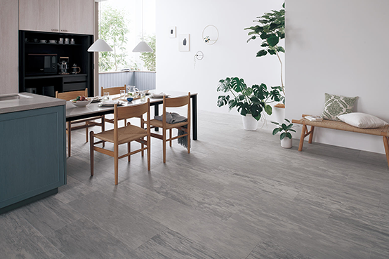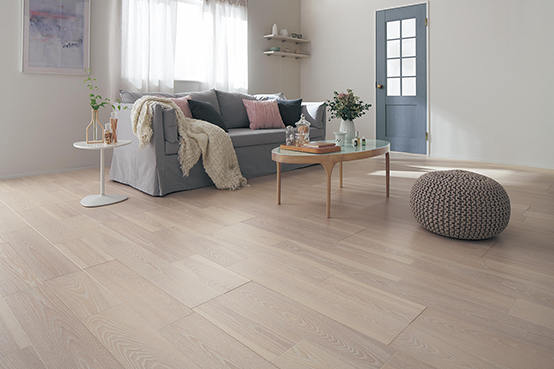 パナソニックのマンション用の床材は、床材裏面に特殊なクッションを使用し、階下に伝わる音を軽減します。