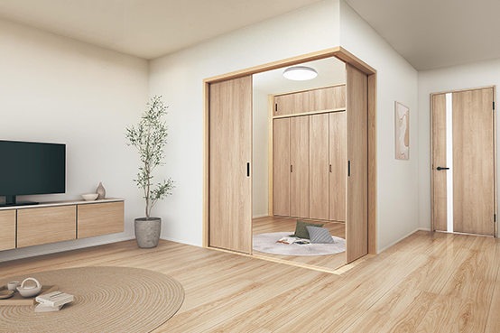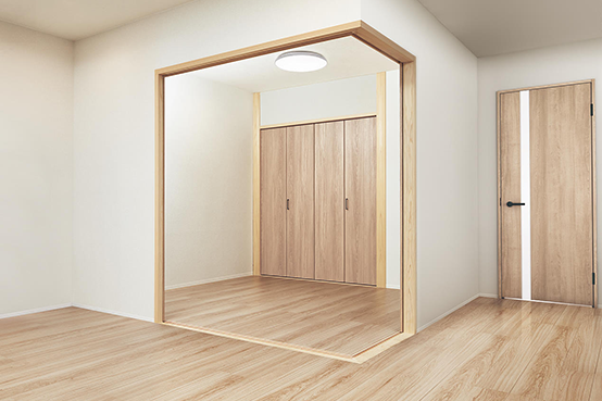 また、畳は敷居にホコリがたまりやすく、放っておくとふすまの滑りが悪くなり、開け閉めしづらくなることもあります。フローリングにして、上吊り引戸にすれば、下にレールがないため、開けやすく、お掃除もラクになります。
