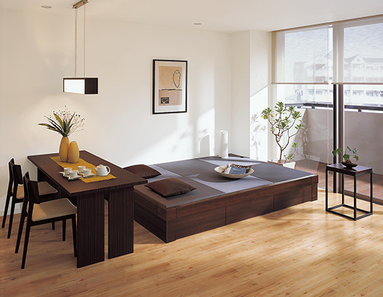 畳の上にテーブルやソファを置くと、家具の跡が残ります。また、畳は家具を置いていない部分は、日焼けするので、模様替えの時に気になることもあります。
