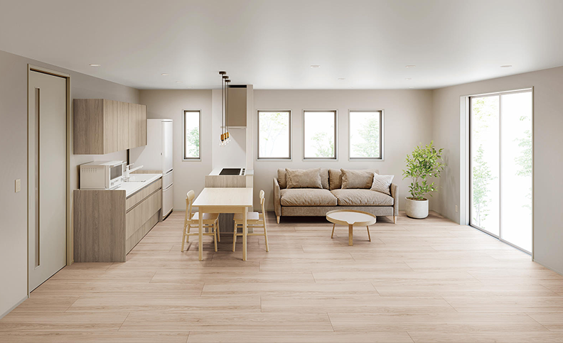 家具以外でもフローリングの色柄の種類も増え、壁紙や、照明も幅広いラインアップの中から選べ、部屋全体をトータルコーディネイトしやすくなっています。