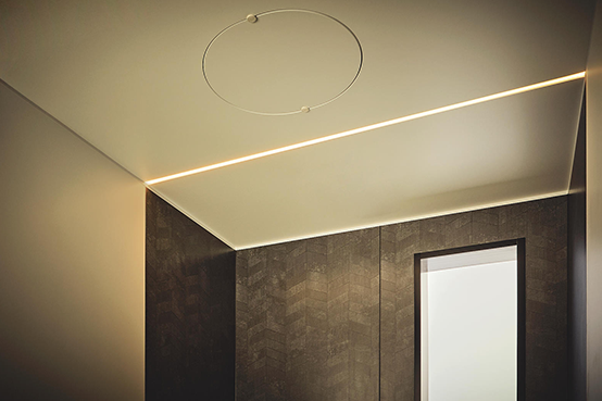 器具の存在感を無くすことで空間全体をスッキリ美しく照らします。白色から電球色へ、気分に合わせて光の色を切り替えられます。朝は明るく、夜はリラックスした雰囲気を演出できます。