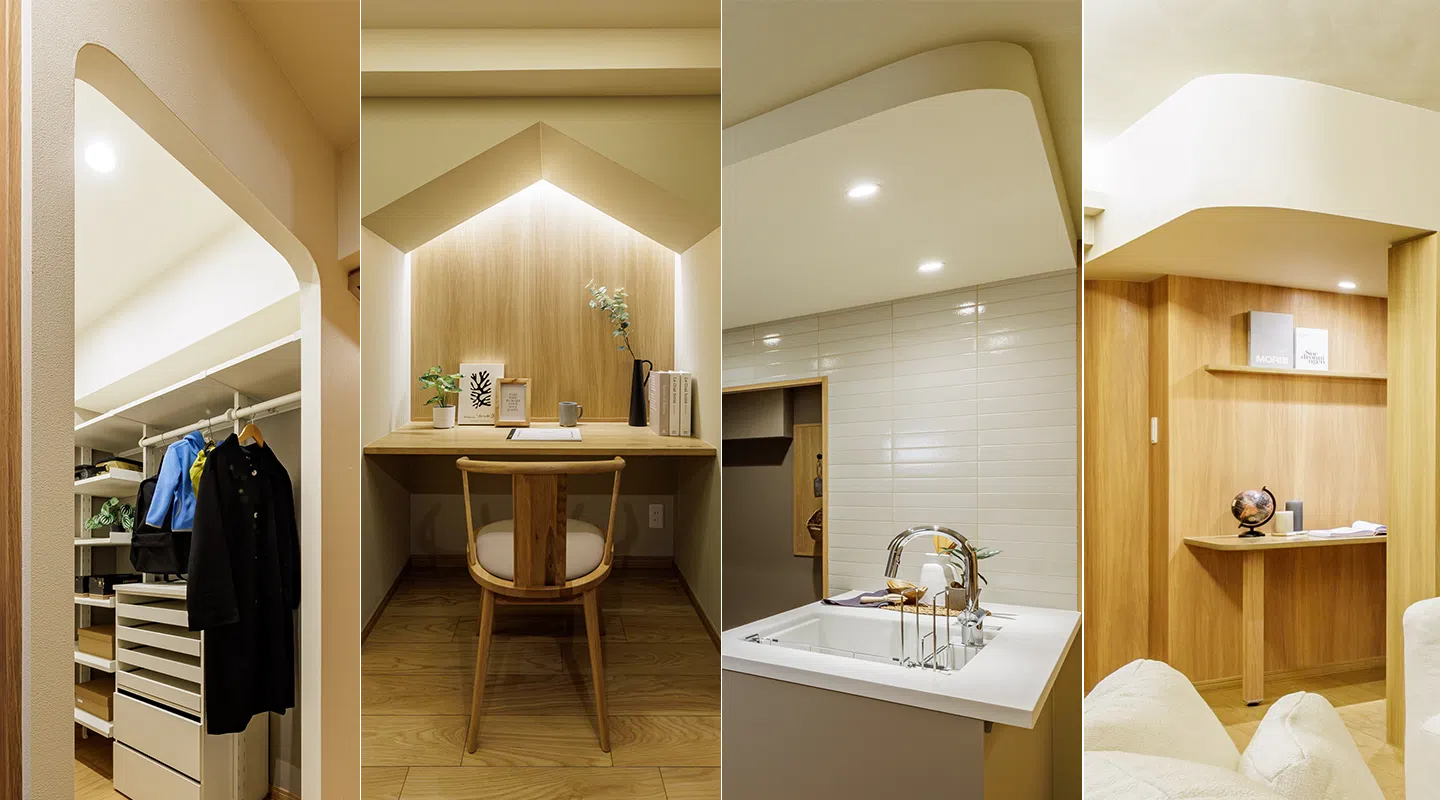 パイプスペースや既存壁の制約を巧みに解消し、ジャストフィットの設計を実現。機能性とデザイン性を両立