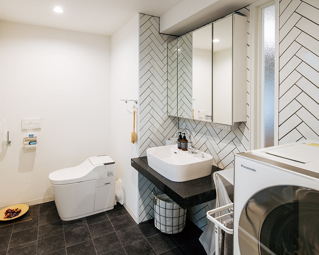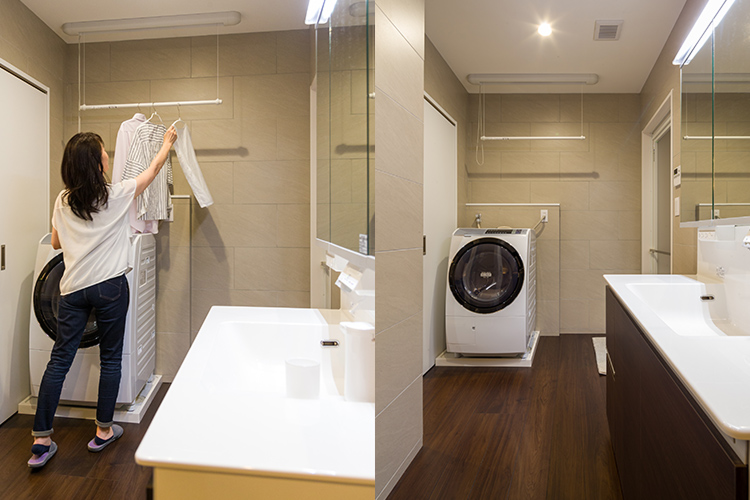 洗面室は身支度だけでなく、洗濯・物干し・収納まで担う”多目的空間”に。