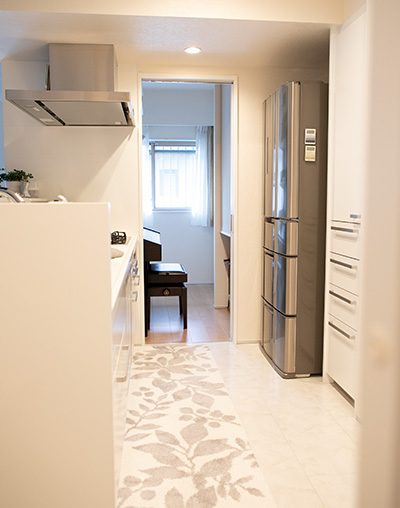 また、キッチンへと抜ける扉は、開放するとリビングからも丸見えになるため、普段は閉めているそうですが、「朝の洗濯物干しなど、バタバタしているときに便利です」と奥様。