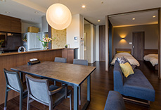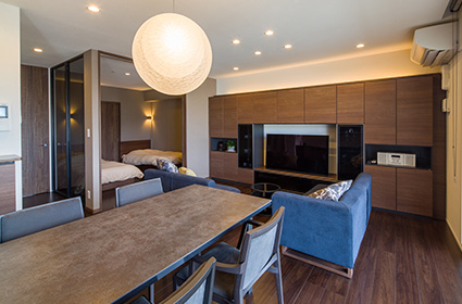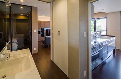 洗面室や寝室をLDK空間と一体にすることで、プライバシーの概念を変えたホテルライクなスタイルが実現しました。
