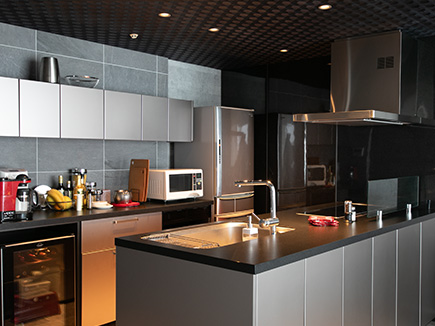 モノトーンでまとめた床材や壁面、ガラスの扉を使用したスタイリッシュな空間は、デザイン性だけでなく清掃性にもこだわりました。
