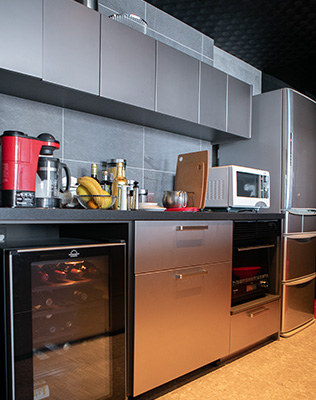 リフォームによって、収納スペースが増えたことも、すっきり空間を保ちやすくするポイントです。大容量の引出し収納にすべて収まるため、カウンターの上に出しっぱなしになる物はほとんどありません。