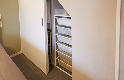 ご主人は「私はネットショッピングを楽しんでいます(笑)。デスクは同じモノを選び、必要に応じてくっつけて使えるように。天板と脚を分解して収納できるので、ゲストルームとしても使えます」とにっこり。今後のアトリエの使い道にワクワクしながら、日々をいきいきと過ごされているI様ご夫婦のセカンドライフ。