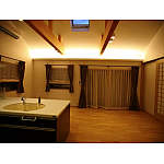 吹き抜け天井の間接照明がLDK全体の広がりや奥行きを演出。