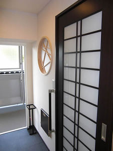 玄関横は洋室を和室に変えました。丸窓が明かり取り 兼 アクセントになっています。