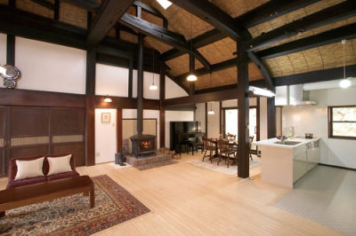 古民家の魅力とS様ご夫妻の人柄に惹かれ、竣工後の一年間だけで100名以上の来客があったとか。周辺の里山の豊かな自然を満喫した後は、お風呂でミスト浴を楽しんだり、オープンなキッチンでゲストもお料理の腕を振るったり。広い土間リビングで、ストーブの薪が弾ける音を聴きながら味わうお料理とお酒は格別だとか。「古き良き伝統建築と最新の設備が同居しているのが素晴らしい」と皆様が絶賛されるそうです。同家9代目となるご子息が「父と母が蘇らせてくれたこの家を、僕の代になっても大切に住み継いでいきたい」と語る姿に、ご両親は目を細めていらっしゃいました。