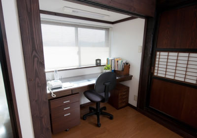 ダイニングの一角には書籍コーナーを新設。読書や書き物などに使われています