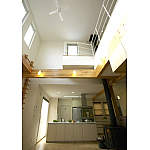 大きな吹き抜けの高窓から入る光に満ちた明るいリビング。あたたかい暖炉の前が、家族の特等席になりました。子供とパパの笑顔が弾け、ママも家事をしながら会話に参加できます
