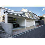ガレージに明るい外光を採り込むとともに、スタイリッシュな外観も実現