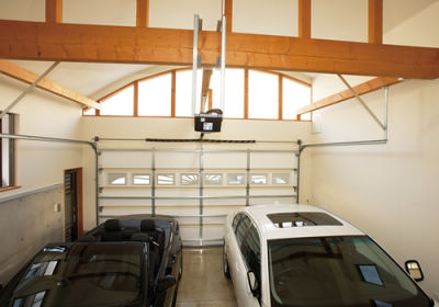 ガレージに明るい外光を採り込むとともに、スタイリッシュな外観も実現