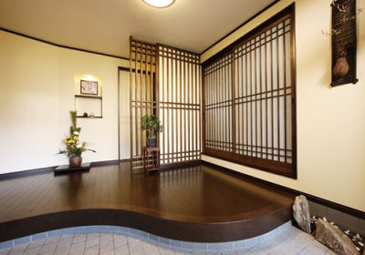 和モダンの端正な佇まいが家の格式を伝え、お客様をあたたかく迎えます